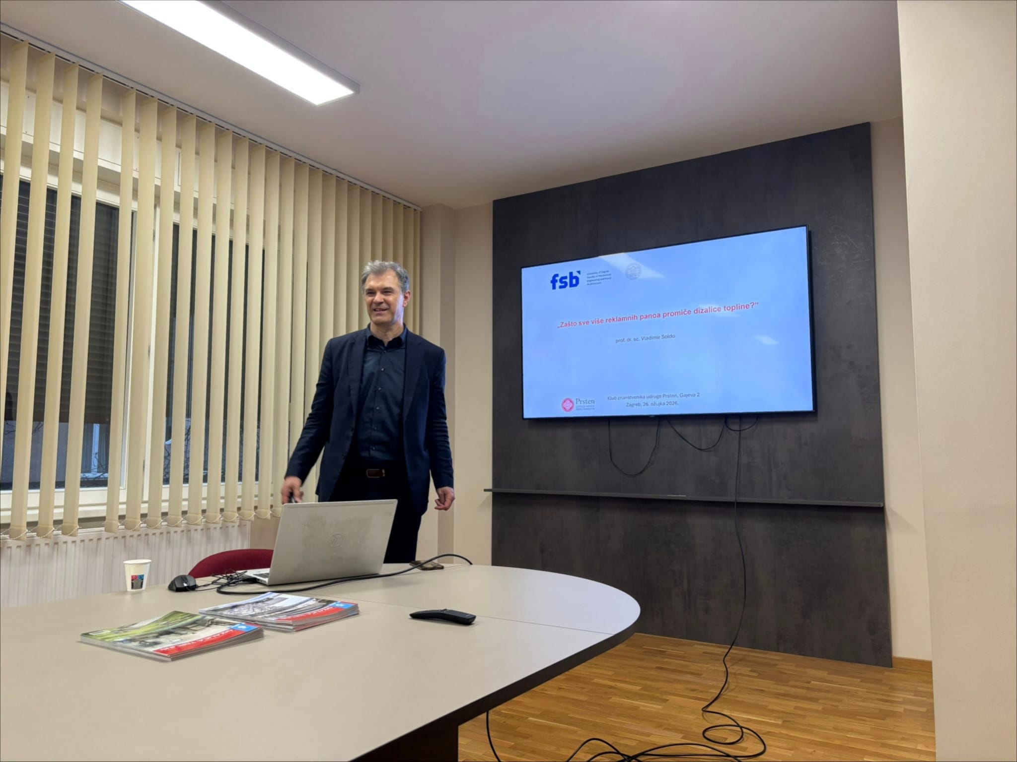 Iako su na snazi bila i narančasta i crvena upozorenja na opasno vrijeme u Zagrebu, u Prstenu se 26. ožujka okupila ekipa hrabrih kako bi poslušala predavanje o dizalicama topline u organizaciji Kluba znanstvenika. U početku je to bio razgovor, a onda je ipak odlučeno održati predavanje s prezentacijom Zašto sve više reklamnih panoa promiče dizalice topline?