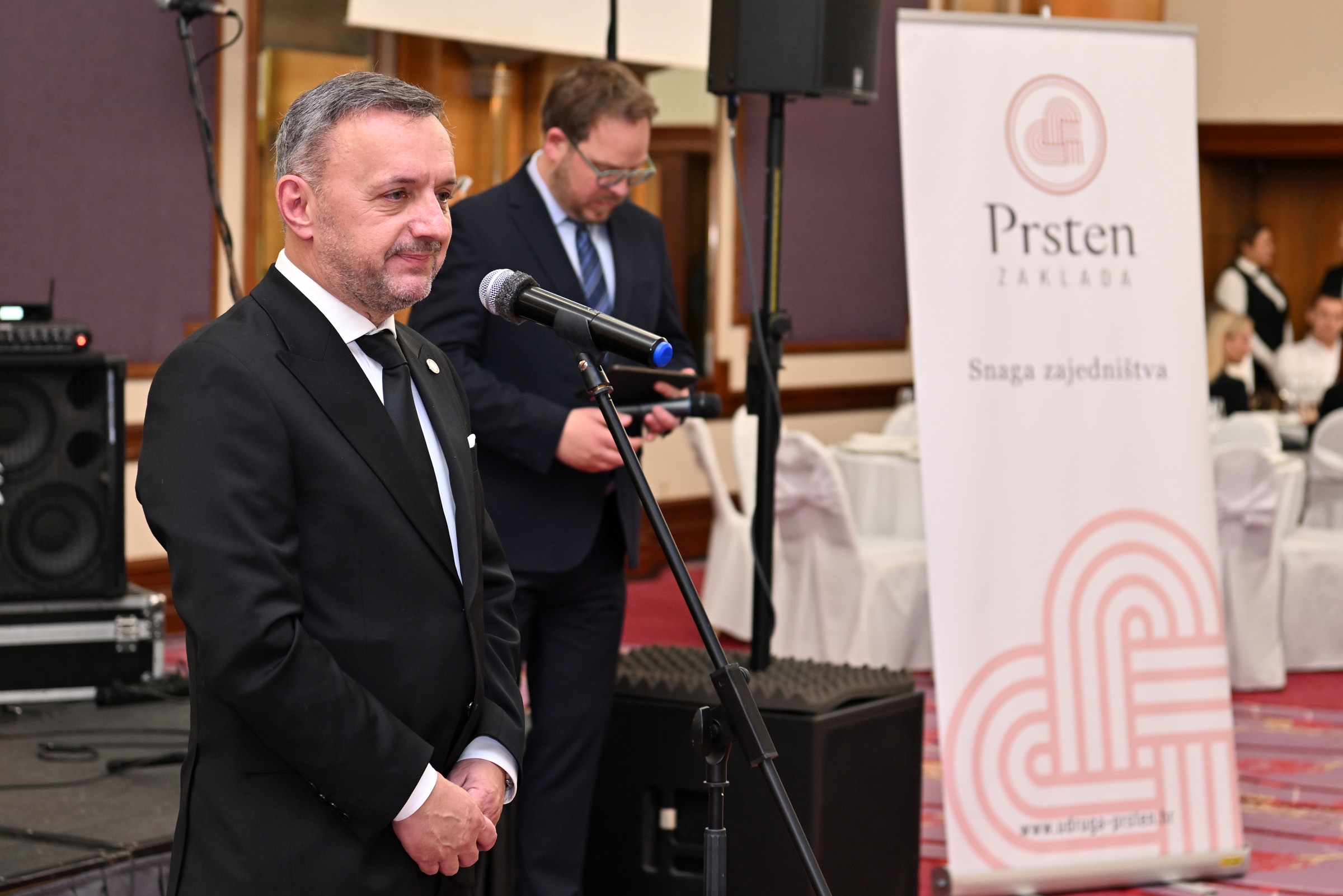 Izrazio je zadovoljstvo što su uručeni ugovori novim stipendistima Zaklade Prsten te im poručio: „Vi ste dokaz da sve što radimo ima smisla. Danas je Prsten tu za vas, a sutra ćete, vjerujem, vi pomagati nekom drugom.“ Zahvalio je svima na odazivu i potpori radu Udruge i Zaklade, sa željom da sve i u novoj godini povezuje snaga zajedništva.