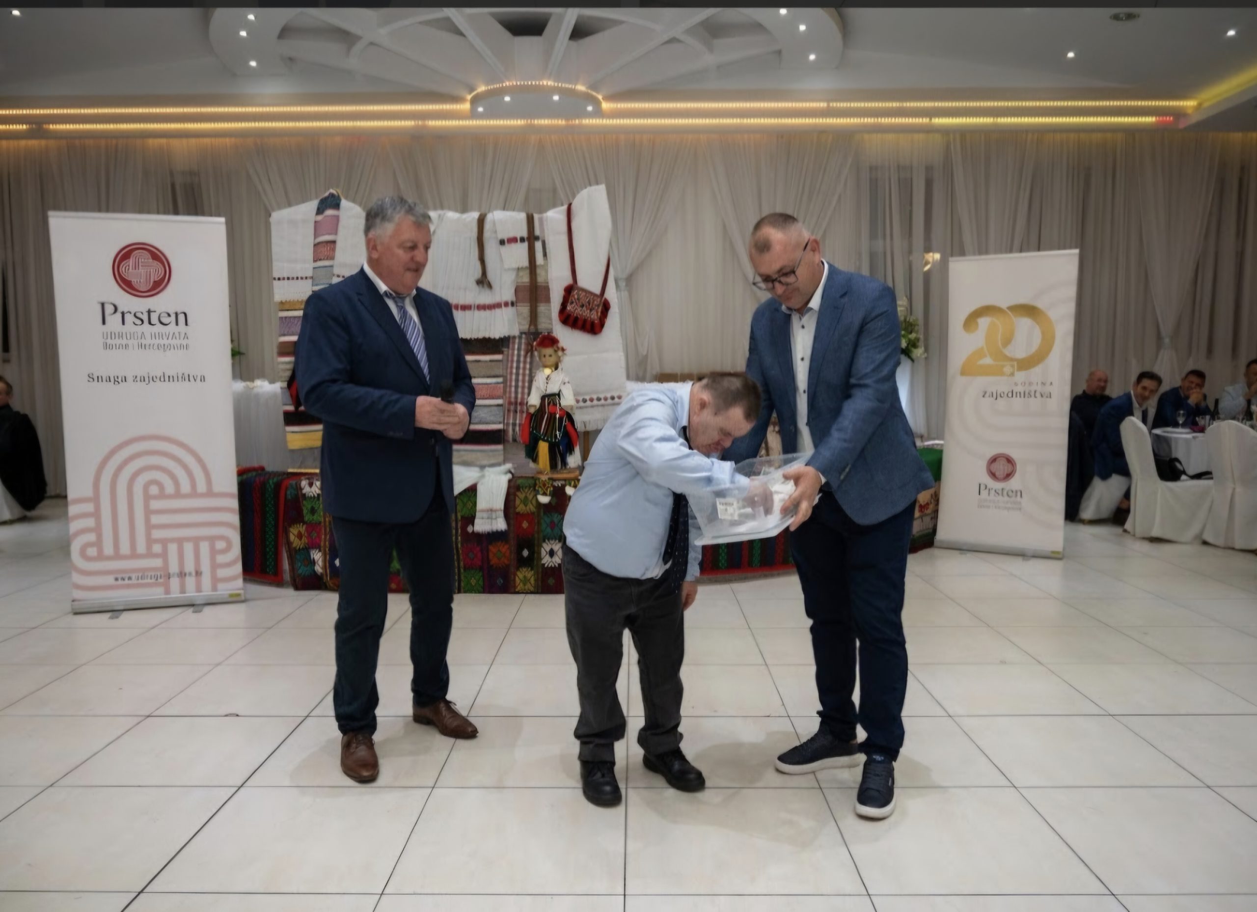 Tim povodom u svečanoj dvorani Carpe Diem okupili su se brojni članovi i prijatelji Udruge Prsten te gosti i uzvanici, među kojima su bili potpredsjednik Vlade i ministar obrane Ivan Anušić, saborski zastupnici Pero Ćosić i Livia Maduna, državni tajnik Marinko Beljo, župan Brodsko-posavske županije Danijel Marušić, gradonačelnici Slavonskog Broda Mirko Duspara i Nove Gradiške Vinko Grgić te načelnici općina i drugi uzvanici.