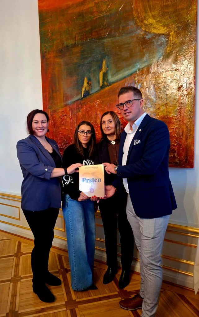Trećeg dana u gradskoj vijećnici, smještenoj u sklopu dvorca Mirabell, dočekali su ih uspješni Hrvati u Salzburgu; predsjednik Hrvatskog centra Salzburg, te gradski vijećnik Jurica Mustać i zastupnica Delfa Kosić. Upoznali su ih s načinom života i uspjesima mladih Hrvata u Salzburgu, a predstavnice Kluba žena na tom su susretu predstavile i domaćinima darovale monografiju Prstena izdanu u povodu 20. obljetnice djelovanja.